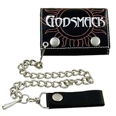 Black leather embroidered Godsmck wallet with chain. Tight embroidery of sun logo in orange.Images ScreenShot