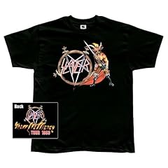 Artwork from slayer's 1983 Show No Mercy Tour is featured on both the front and back of this black cotton t-shirt.Images ScreenShot